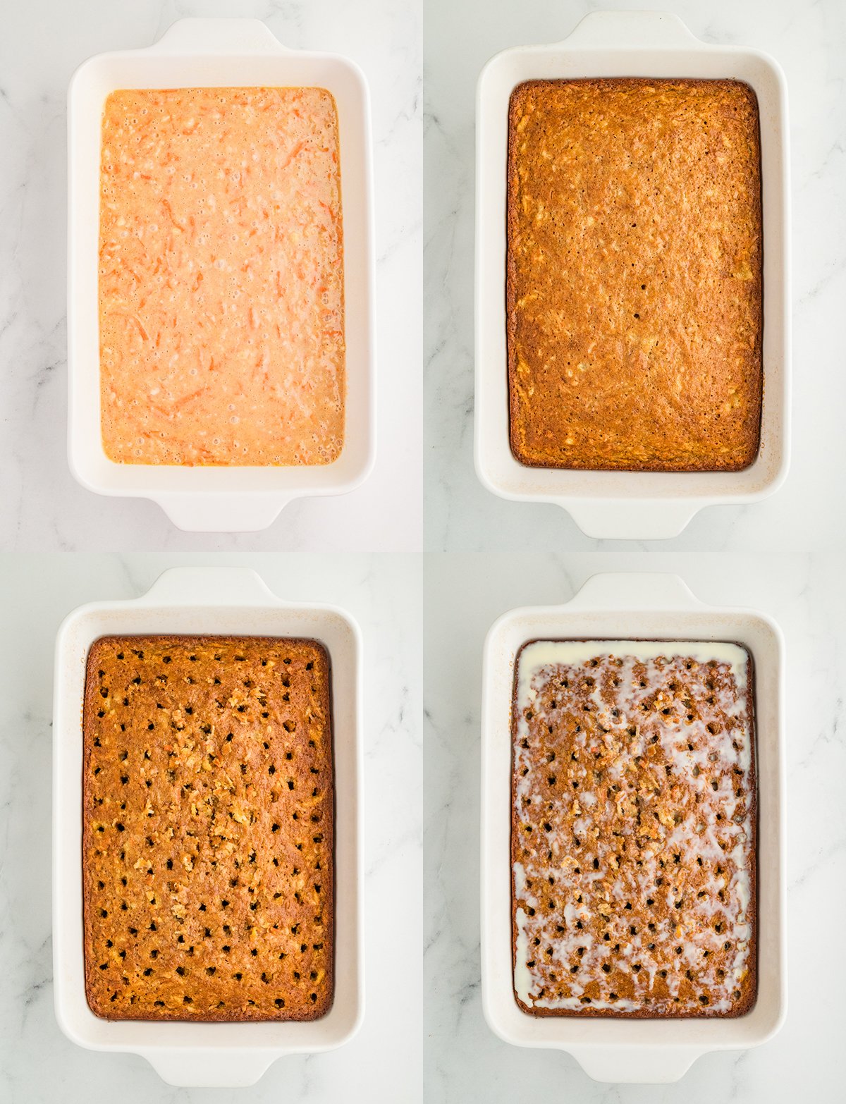 I love a good carrot cake. And I love a fun poke cake, they’re so moist and yummy. So one day it hit me, why not do combination of those: a Carrot Cake Poke Cake!
